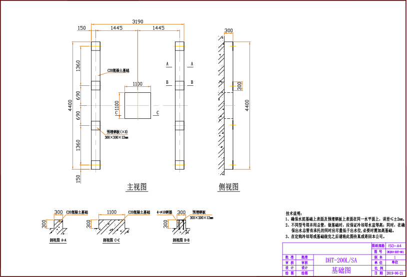 2、橫流式塔進水管由兩邊分別裝設,并連接到配水箱,用戶應在接管處設置蝶閥,以供調節流量。進水管可以由下面的干管引入,也可以把干管放在塔上,這時其管道支架應落在冷卻塔側面的架上。出水管可選任一進風方向由塔底水箱接出。